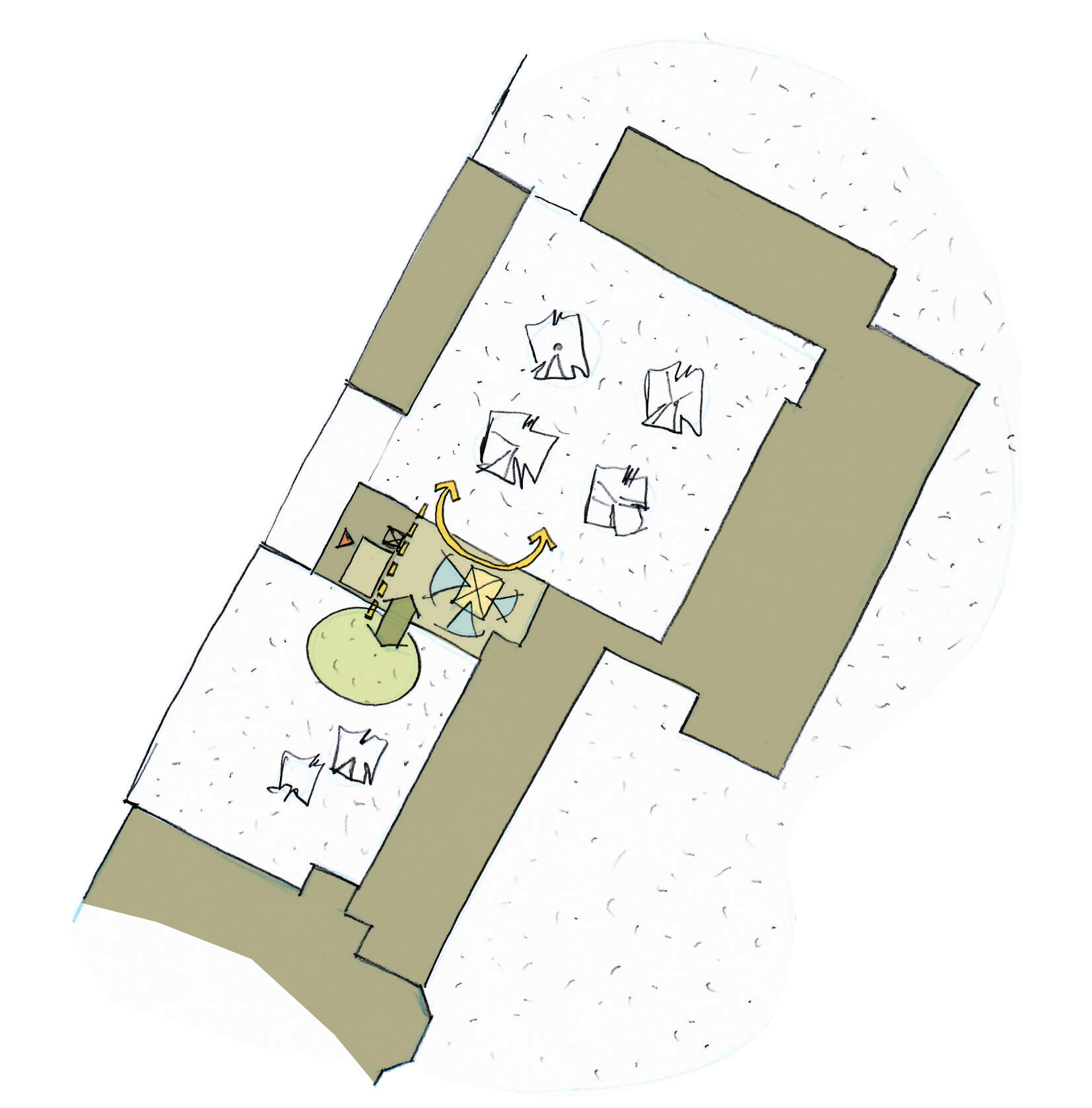 Het project betreft de herinrichting van een gelijkvloerse vleugel van het beschermde Passionistenklooster in Wezembeek Oppem tot een kleinschalig, warm en functioneel kinderdagverblijf voor 19 plaatsen. De erfgoedcontext bepaalde het ontwerp: de bestaande structuur moest maximaal behouden blijven, waardoor de indeling werd geoptimaliseerd binnen het beschikbare grondplan. Aan de gemeenschappelijke inkom worden de ondersteunende functies compact gegroepeerd: een bezoekerssanitair, onthaal, wasruimte, personeelslokaal en een stalling voor kinderwagens. Door deze clustering blijft de rest van het gelijkvloers beschikbaar voor leefruimtes en interactiezones. We kiezen daarbij voor zachte en warme materialen die een huiselijke sfeer creƫren, en ontwerpen inrichting en meubilair op maat van alle gebruikers (kinderen en personeel). De tuinzone wordt ingericht als veilige, groene speelruimte met directe toegang vanuit beide leefruimtes. Door natuurlijke materialen, schaduwelementen en open zones wordt de buitenruimte een volwaardig verlengstuk van de binnenomgeving.