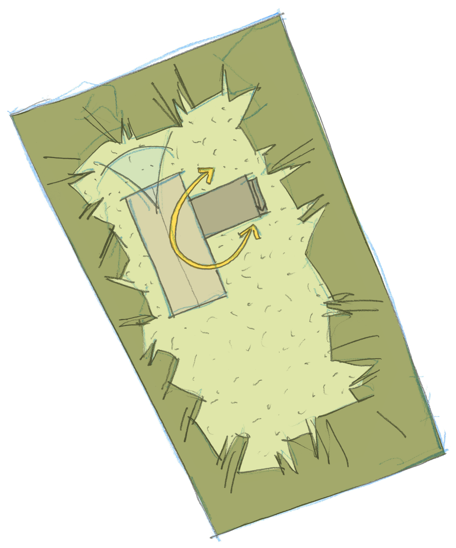 Temidden van een bos ontwerpen we een ruime woning die opgaat in haar omgeving: een hedendaagse chalet die zich op een handige manier weet in te passen in de helling. We werken daartoe met twee verdiepingen: een lager gelegden sokkel die aansluiting vindt bij het lage gedeelte van de tuin, en een dwars gelijkvloers op niveau van de straat, die de toegang tot de woning verschaft. Ter hoogte van de achtergevel zweeft dit gedeelte tussen de kruinen van de bomen. Een ruim terras maakt deel uit van de volumetrie, en werd zodanig gepositioneerd waar het meeste zonlicht valt tussen de bomen. Op het gelijkvloers wordt een zelfstandig wooneenheid gerealiseerd met ruime leefruimte, eethoek, keuken, slaap- en badkamer. Op de lager gelegen verdieping worden nog twee kamers gerealiseerd, een bureauruimte, welnessruimte met contact met de buitenruimte, en alles geschakeld aan een polyvalente zit- en speelhoek.